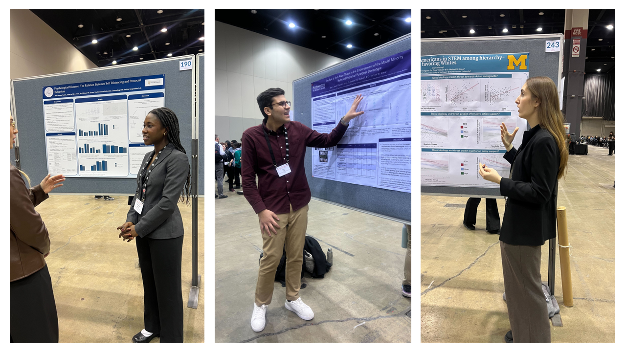 2025 interns: Mae Jeanna Sakho, Zein Saleh, and Ana Torresarpi presenting their summer research at the SPSP convention in Chicago, IL (not pictured Alexa Pryor)